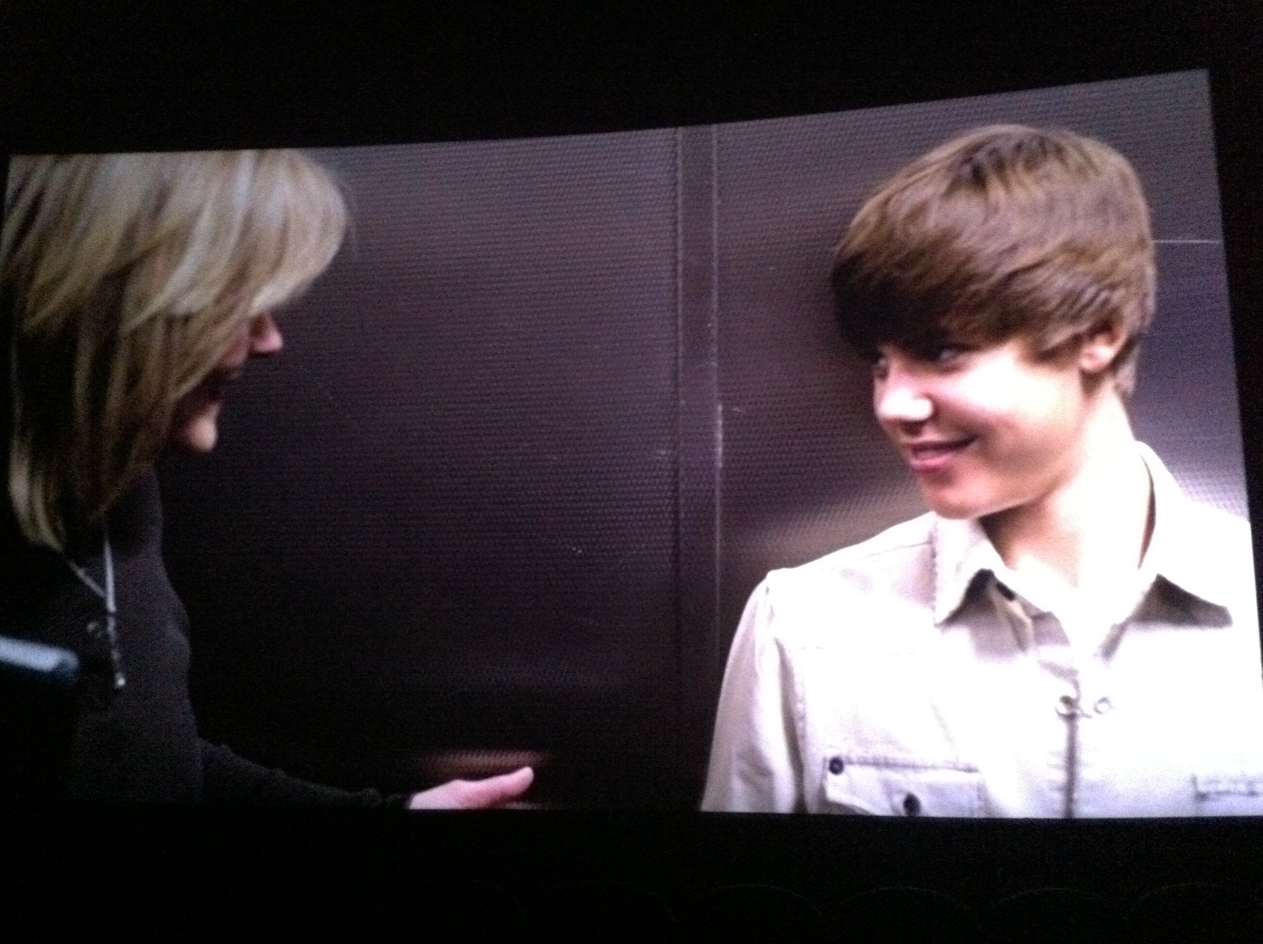 After enduring a lengthy once-over from the ticket-taker (Are they actually into Justin Bieber? she is wondering. Why would two adults unaccompanied by children choose to see this movie?) we take our seats.